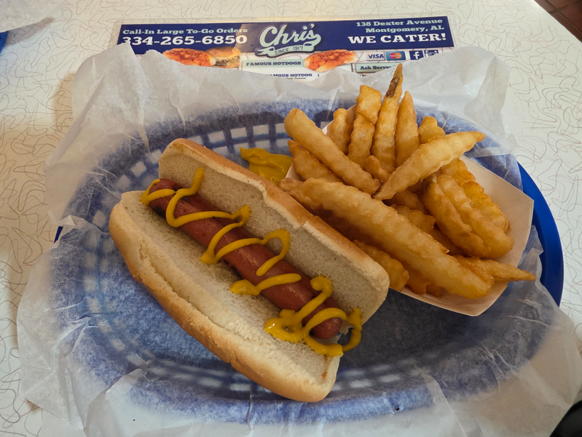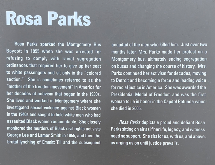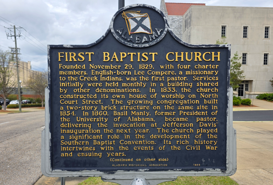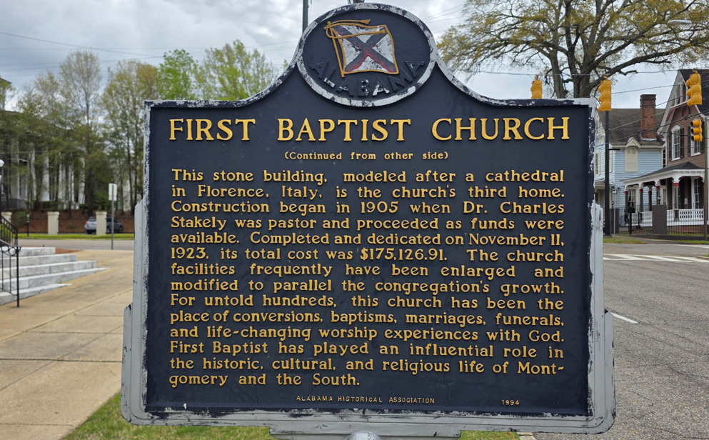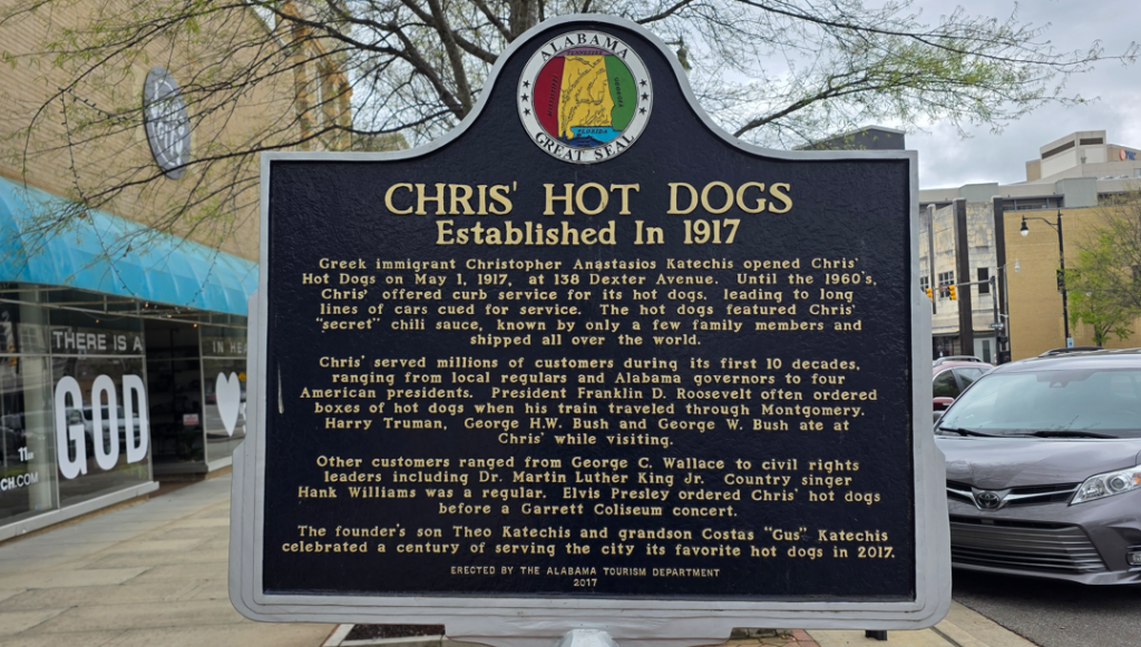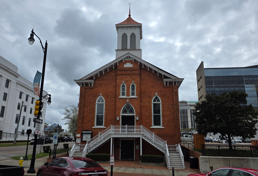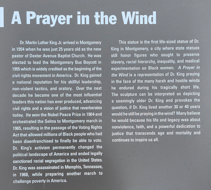Dexter Avenue King Memorial Baptist Church. Martin Luther King was pastor here 1954-1960.Dexter Avenue Baptist Church parsonage. Martin Luther King lived here while he was pastor.Legacy Park, across the street from the Legacy Museum.First Baptist ChurchHank Williams statue. This was my father’s favorite singer.First White House of the Confederacy.We ate lunch at this historic hot dog place.