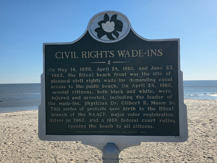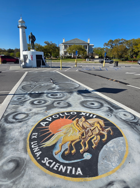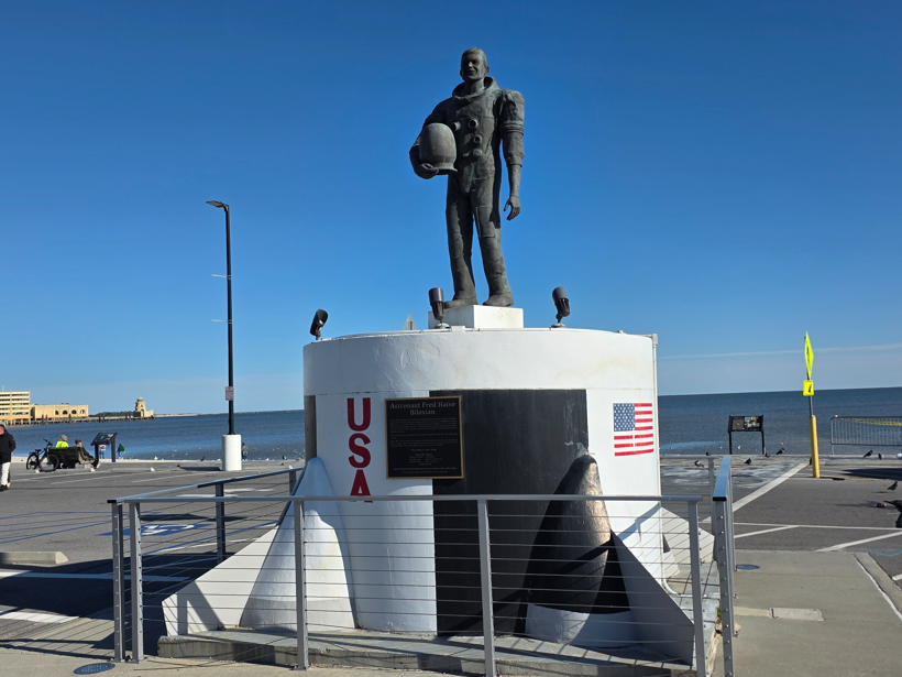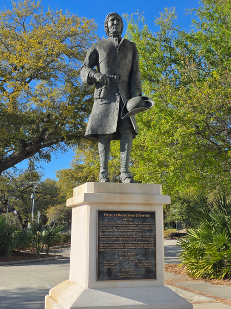 Biloxi LighthouseBilox pierStatue honoring Astronaut Fred Haise, who was one of the astronauts on Apollo 13. The Apollo 13 mission, the third planned lunar landing became a “successful failure” after a critical system failure. The spaceship was severely damaged when an oxygen tank exploded 200,000 miles from Earth, and the crew was able to manually navigate their way back to a successful splashdown on earth. Cool Apollo 13 path to the Haise statue.Hurricane Katrina MemorialStatue of Pierre LeMoynne Sieur d’Iberville 1661-1706, Canada’s first hero sent by King Louis XIV to locate the mouth of the Mississippi River from the Gulf of Mexico (now Gulf of America). He landed on the Biloxi peninsula in 1699 which began the colonization of the Mississippi coast and the Louisiana Territory.Lighthouse at night.