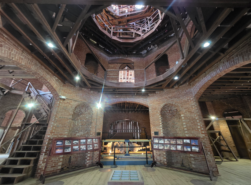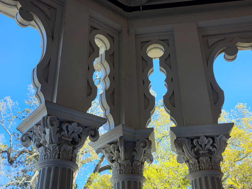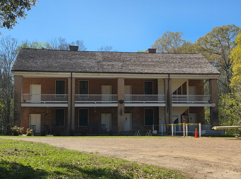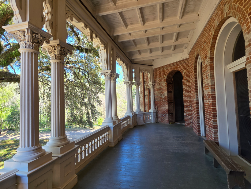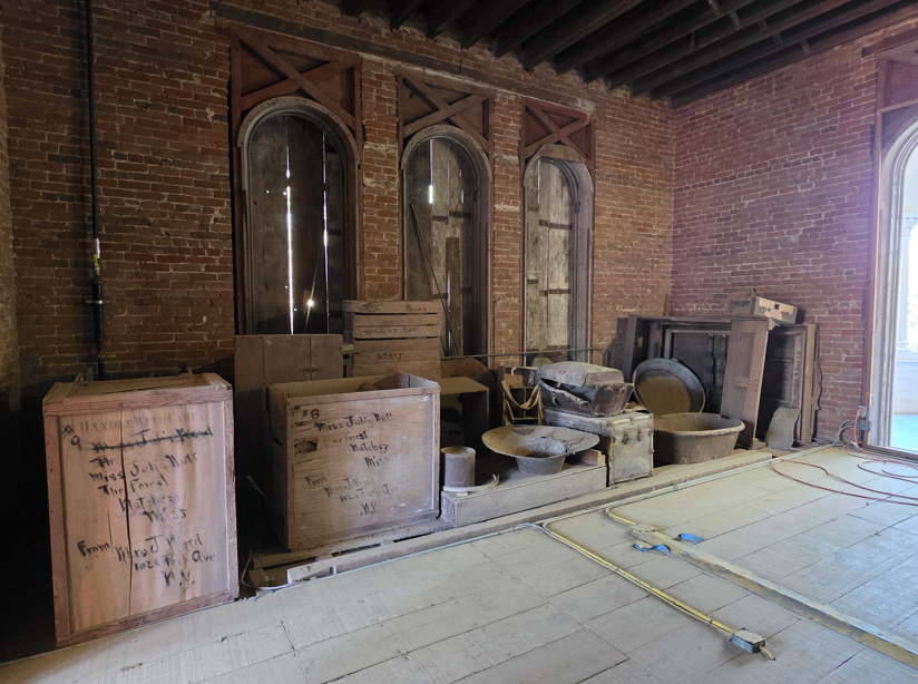 Built for the Nutt family, Longwood is the largest octagonal home in the US, a mid-nineteenth century villa in the Oriental style. Construction began in 1860 and was designed to have 32 rooms, each with its own entrance onto a balcony. Construction halted when the Civil War began, causing the workers to leave behind their tools, paintbrushes. The Nutt family moved into the basement as temporary, but Longwood was never completed.Many of the Nutt family furnishings are displayed in the completed basement level.On the first floor, this is the view looking up into the dome.This would have been spectacular if completed.At the start of the Civil War, the workers left all their tools as is.Beautiful architectural features.The view from the front door.The bricks in the sidewalk were hand made by slaves. Some of the bricks have fingerprints of a slave.The famed ostrich egg. In the mid 19th century, American planters were desperate to improve their cotton yields. The South’s prosperity depended on cotton, but native varieties were not as strong or silky as prized cotton from Egypt. Ritterhouse Nutt traveled to Africa to obtain the coveted Egyptian cottonseed. Because Egyptian authorities carefully searched travelers to prevent smuggling, Nutt devise a clever way to smuggle the seeds out of the country: he hollowed out an ostrich egg and filled it with cottonseeds. Customs agents never suspected anything, hidden in plain sight. Planted in Mississippi soil, the seeds thrived, and it was crossed with Mexican cottonseed, to create “Petit Gulf” cotton, a superior cotton that boosted the region’s wealth in the decades leading up to the Civil War.This was the kitchen, now a workshop.Slave quarters.
