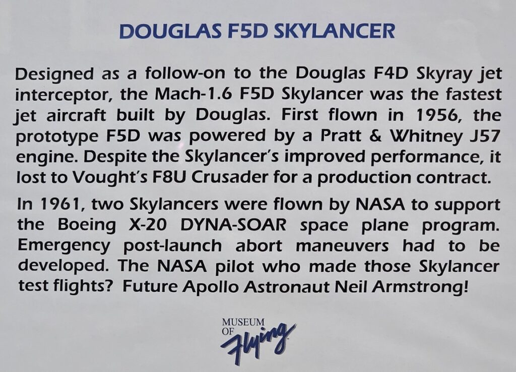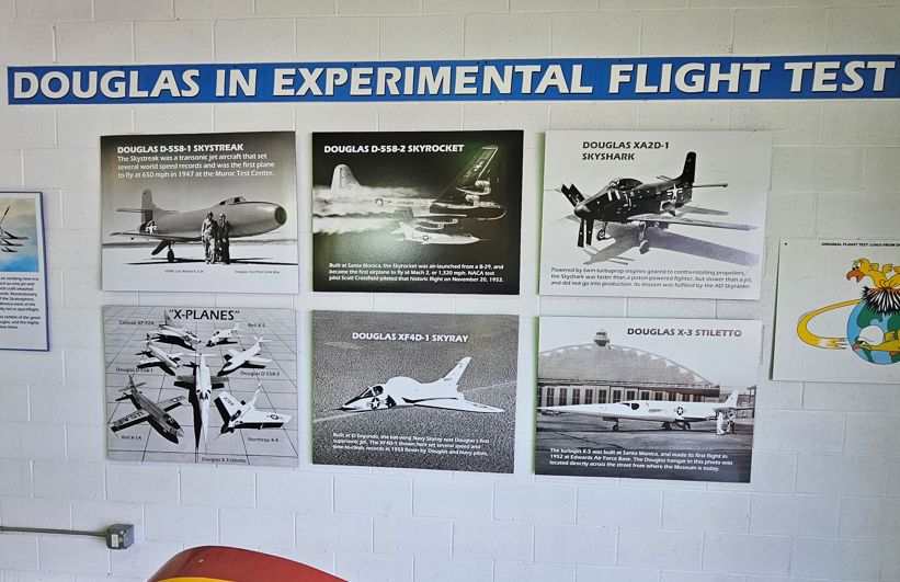 This museum honors the work of aviation pioneer Donald W. Douglas, who was just 28 years old when he started the Douglas Aircraft Company in Santa Monica in 1920. Within 20 years the company had state-of-the art production facilities in El Segundo, Long Beach, and then in Chicago, Tulsa and Oklahoma City. He was the czar for all US aircraft production under President Franklin Roosevelt during World War II.The first flight of a DC-3 airplane took place in Santa Monica in 1935. These aircraft were (are) so reliable may are still in service throughout the world even today. The DC-3 revolutionized air travel such that passengers could reach their destinations quickly, safely and at affordable prices. During the 1950s, more than 90% of all world air travel took place on Douglas-build aircraft.The Spirit of Santa MonicaDouglas and his dog WunderbarModel of the Wright Brothers’ original flyer from 1903. Douglas started his company within 20 years of the Wright Brothers’ first flight.Fokker Dr. 1 Triplane. Baron Manfred von Richthofen (The Red Baron) piloted a plane similar to this one during World War I in 1917. This is a replica – no original Fokker Dr. 1s are known to be in existence.Cockpit of a Boeing 727.DC-3Model of LAX Airport with various aircraft.Douglas airplane made an around the world flight in 1924.Martin-Baker Mk. 5 Ejection Seat, used in the Navy Vought F8U Crusader aircraftOriginal drafting desk of Donald Douglas, from the first factory/shop on Wilshire Boulevard on Santa Monica in the early 1920s.Douglas F5D Skylancer, the fastest jet aircraft built by Douglas.Harriet Quimby, first US licensed pilot, first to fly over the English Channel.Douglas Aircraft Company joins the jet age.Teledyne Ryan AQM-81 Firebolt, high-altitude supersonic target, which was an advanced version of the 1968 Raytheon AQM-37 Jayhawk target drone.Ship’s mess bell from the USS Arizona, which was sunk during the Japanese attack on Pearl Harbor.