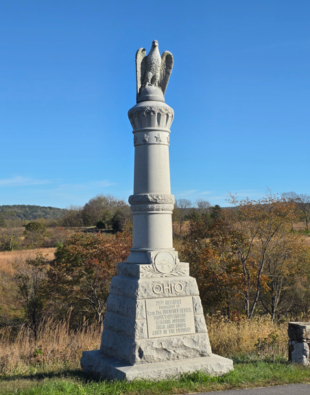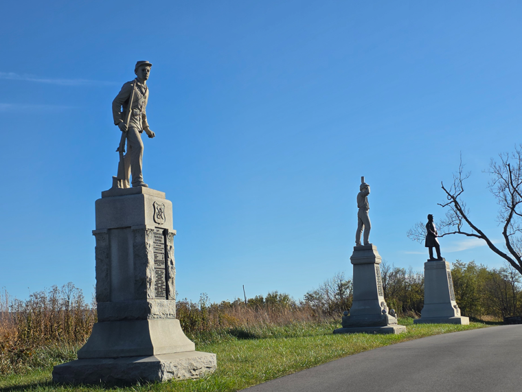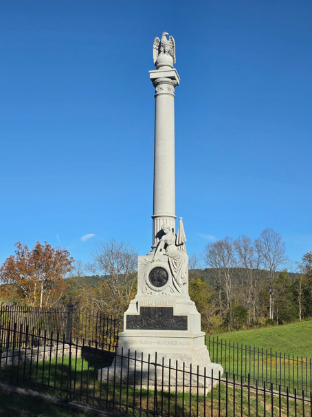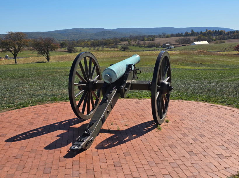 Cannons on display at the Visitor Center, which was closed because of the government shutdown.Model 1841 6-pounder gun.Model 1857 12-pound Gun-Howitzer3-inch Ordnance Rifle10-pounder Parrott RifleThe Dunker Church was badly damaged during the battle, then blown down during a wind storm in 1921, then rebuilt with mostly original materials.Maryland monument.The West Woods area of the battlefield, where the Philadelphia Brigade lost more than 550 men were lost in 20 minutes of fighting.The East Woods. This is where the first shots of the battle were fired during the evening September 16, 1862.The “Bloody Cornfield”, where for four hours the battle raged – 25,000 troops fought, the field changing hands several times.The Final Attack trailKnown as the Rohrbach Bridge before the battle, it was renamed for General Ambrose Burnside who commanded the Union soldiers who fought to take this crucial Antietam crossing during the battle.Joseph Poffenberger FarmThere are more than 22,000 casualties at the Battle of Antietam. Doctors at the scene are overwhelmed. Badly needed supplies are brought in by nurse Clara Barton, known as the “Angel of the Battlefield.”Ohio monumentDelaware monumentNew Jersey monumentIndiana monumentTexas monumentGeorgia monumentMississippi monumentInfantry monumentsMajor General Joseph K. F. Mansfield was mortally wounded near this spot September 17, 1862 while deploying his corps in action.Irish Brigade monument.Ohio monumentGeneral Robert E. Lee statueMonument to William McKinley, our 25th President, who was a Commissary Sergeant with the 23rd Ohio of Colonel Hugh Ewing’s Brigade. During the battle he bravely served the soldiers in his regiment. As President he was assassinated in September 1901.