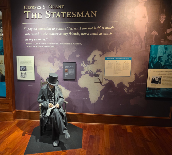Mississippi State University houses the Ulysses S. Grant Presidential Library & Museum.Ulysses Grant was our 18th president, served from 1869-1877.2nd Lieutenant Grant at US Military Academy, West PointGrant rose from relative obscurity to national acclaim in the wake of his victory at Fort Donelson and his success at Vicksburg, Mississippi, the “Gibraltar of the West”.Ulysses Grant, President of the Unites States.This is a copy of a painting young Grant made while a cadet at the US Military Academy, circa 1842. The original painting hangs at the US Military Academy, West Point NY.The Grant familyPresident Grant and First Lady Julia Grant.After leaving the White House Grant and Julia travelled extensively around the world.Grant died in 1885, and is now buried at the General Grant National Memorial in New York City.