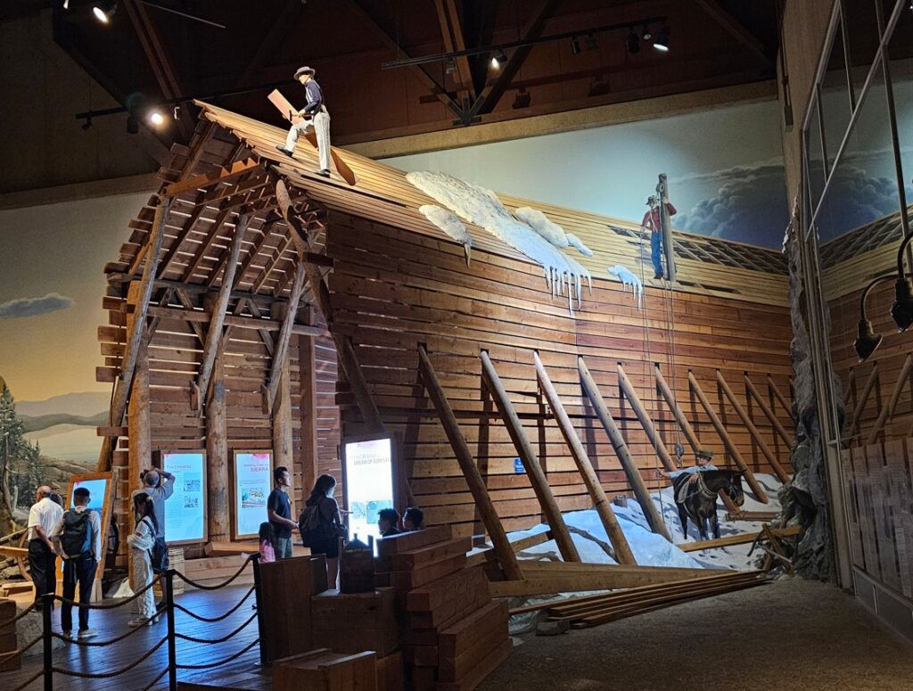 The Donner Party was a group of American pioneers led by George Donner—who became stranded en route to California in late 1846. The party was trapped by exceptionally heavy snow in the Sierra Nevada, and when food ran out, some members of the group reportedly resorted to cannibalism of those already dead. It was the worst disaster of the overland migration to California.The following panels in the museum provide details to the Donner’s plight.